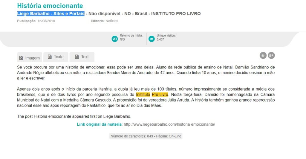 IPL na MídiaHistória emocionante – Liege Barbalho – Sites e Portais – Posted on by gerenciador 24 Sep Link original da matéria: http://www.liegebarbalho.com/historia-emocionante/